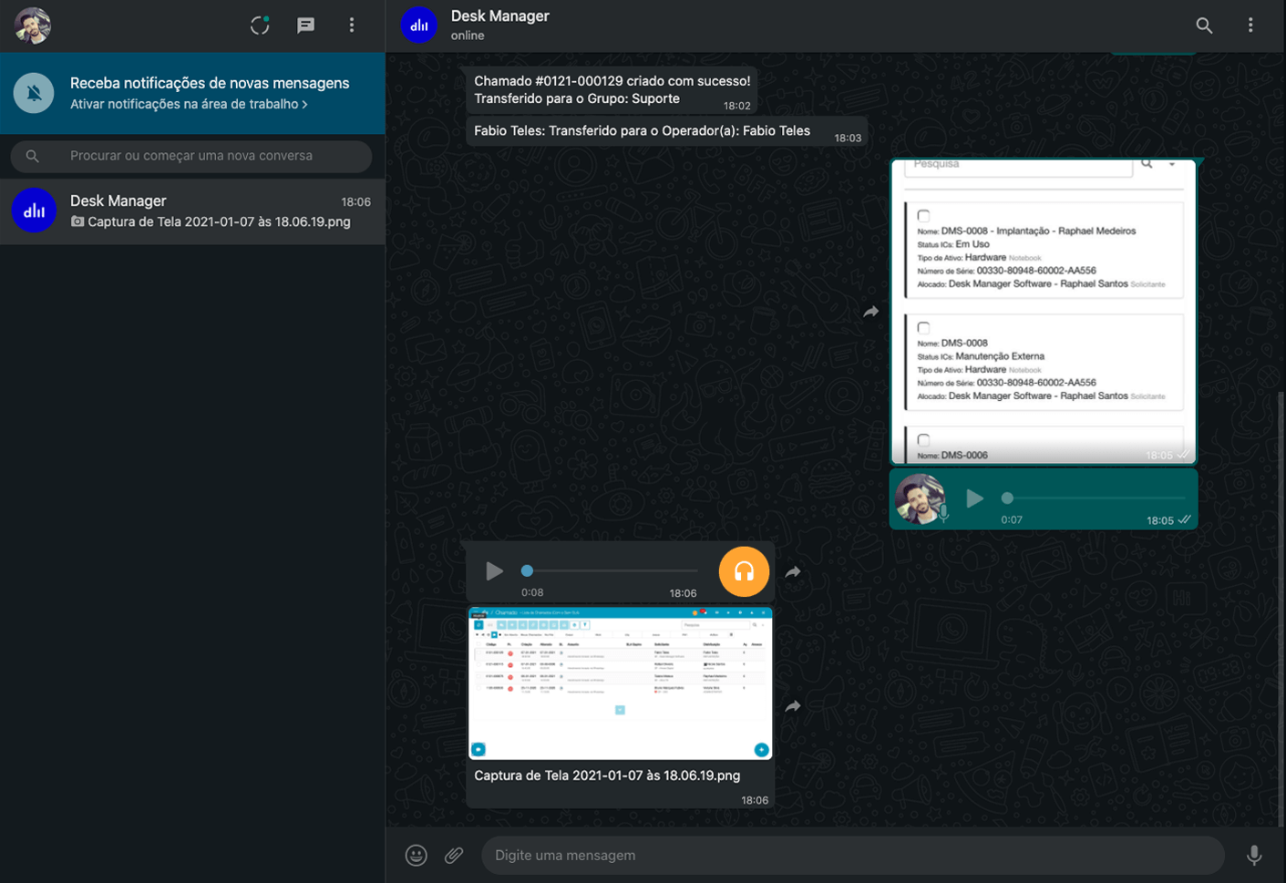 Este contato pode acontecer com clientes cadastrados e até mesmo novos números, o Desk Manager vai atualizar o Registro daquele solicitante automaticamente para que você não tenha que cuidar disso depois, viu que incrível?