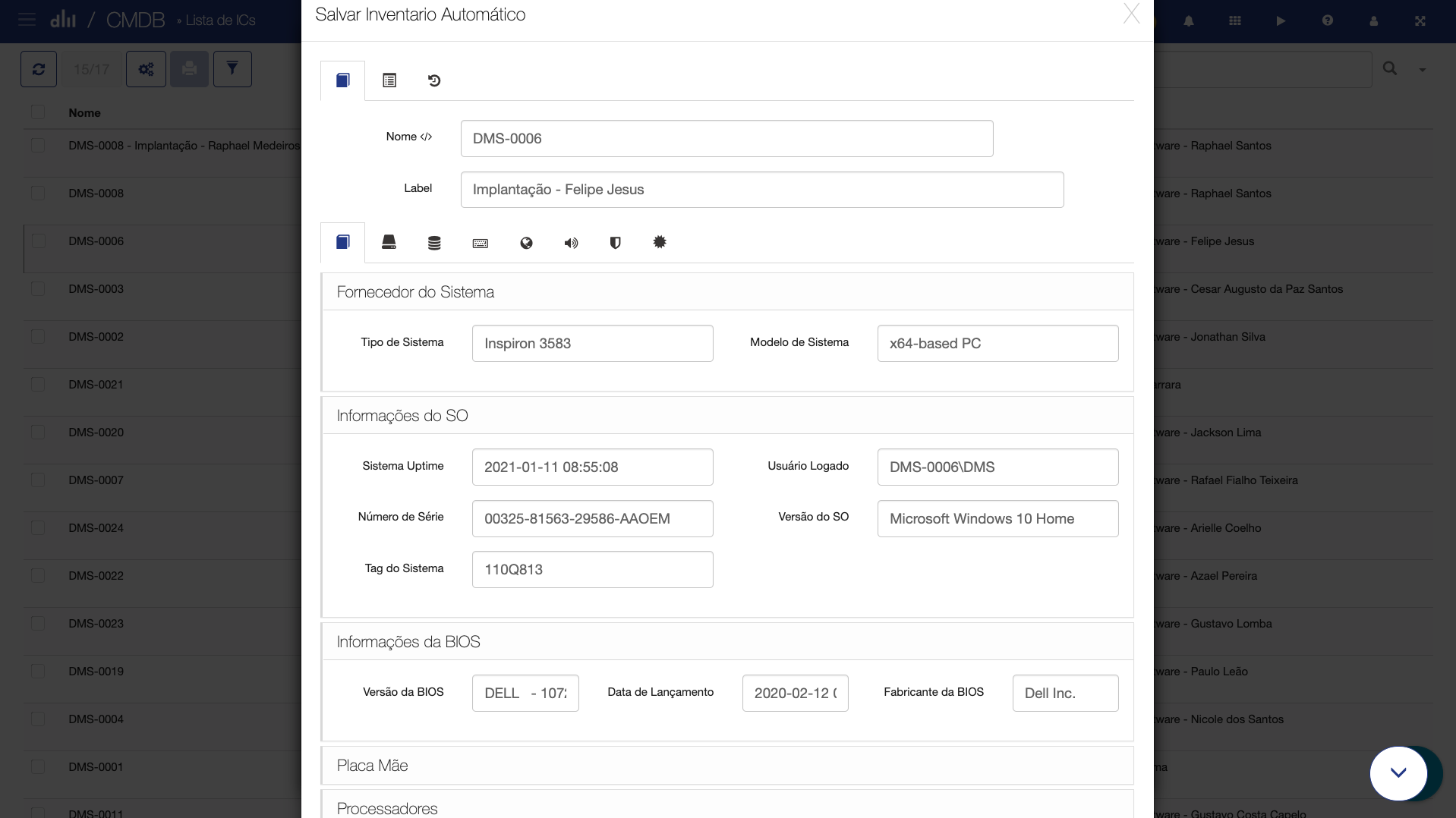 Outro ponto interessante, é que as principais informações do Item de Configuração, quando alteradas, ficam registradas em uma área separada de histórico, permitindo consultar quando tal dado foi alterado e por quem foi realizada essa atualização. Um log importante, certo?