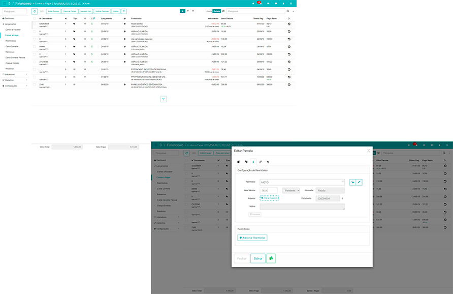 Você poderá controlar todas as despesas extras que sua equipe tiver durante o exercício de sua função, como por exemplo: