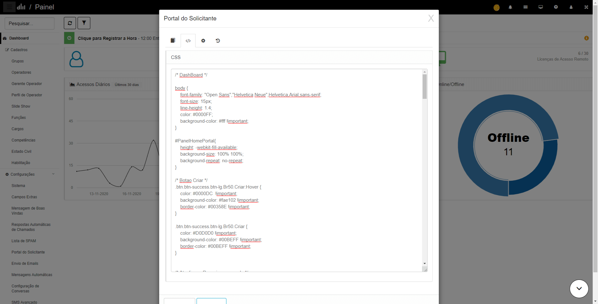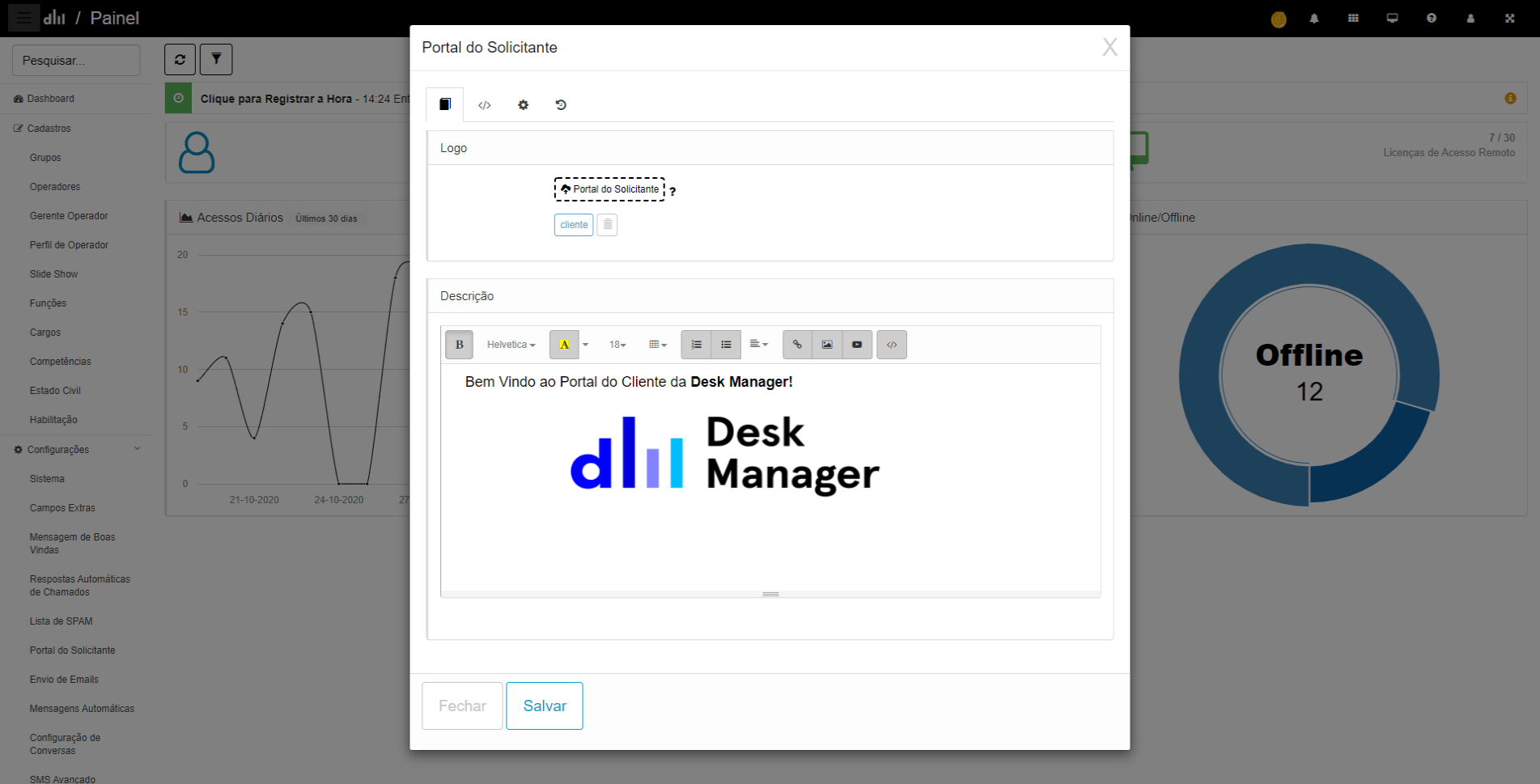 Software de atendimento ao cliente com configurações personalizáveis