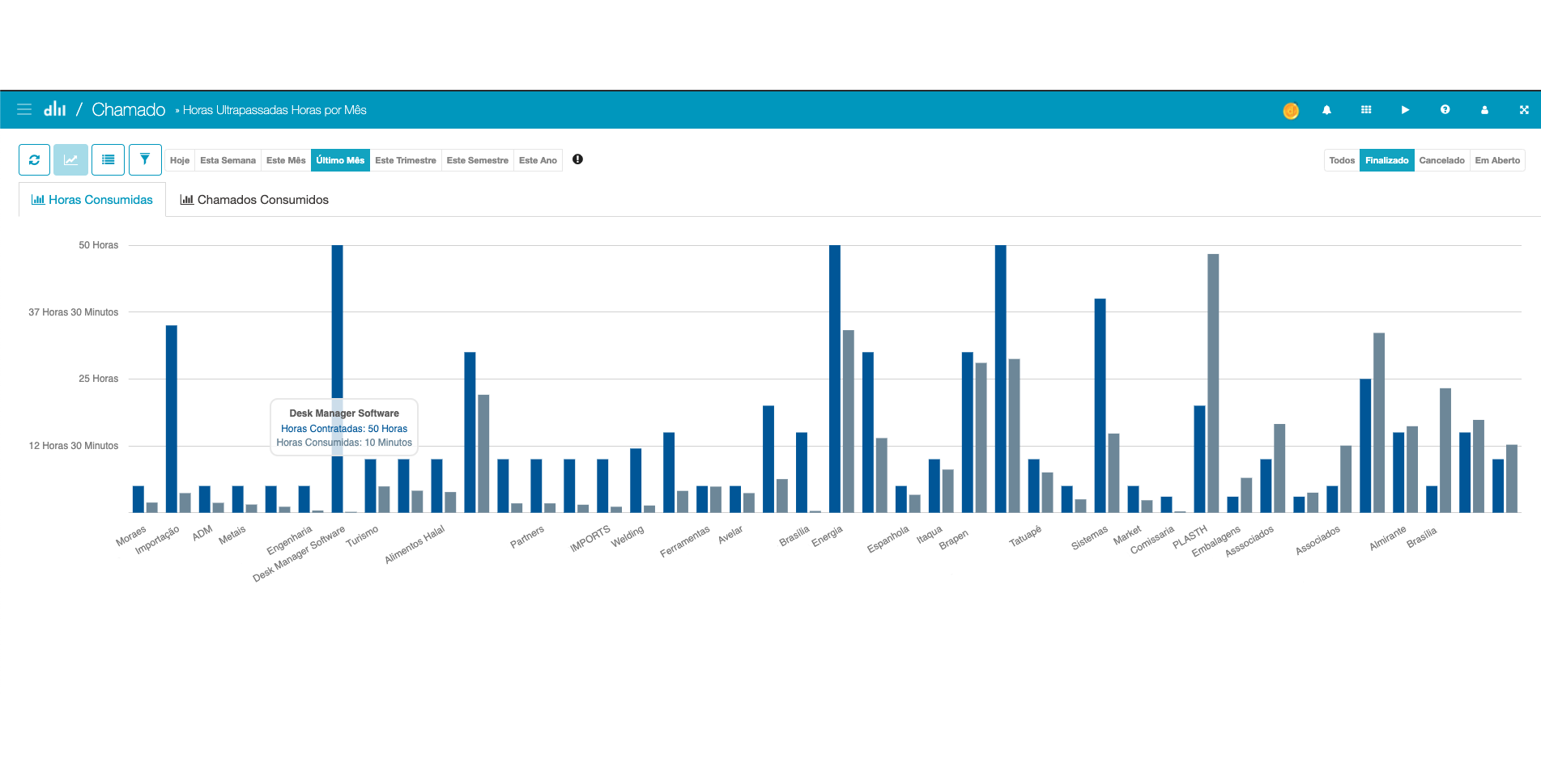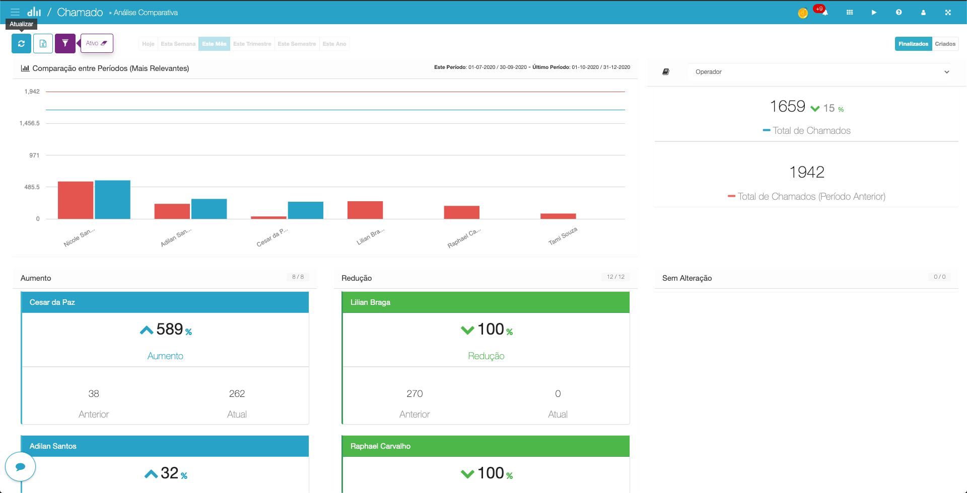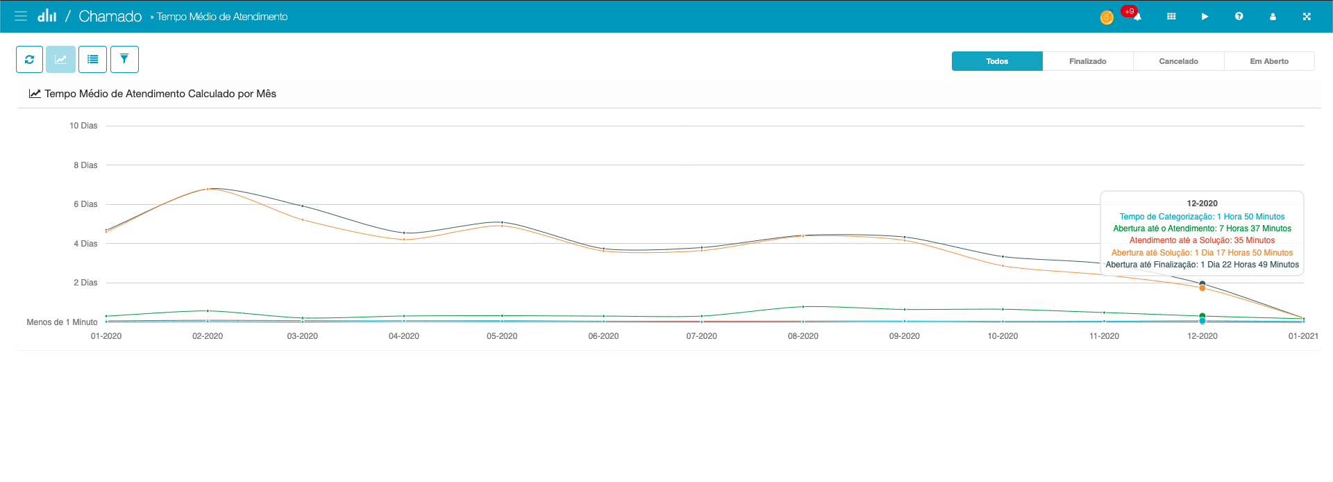 Com poucos cliques será fácil identificar quantos chamados cada membro da sua equipe está atuando, qual o cliente ou unidade de negócio possui mais demandas abertas com a sua operação, quantos chamados ainda estão com o SLA em dia ou expirando, e muito mais.