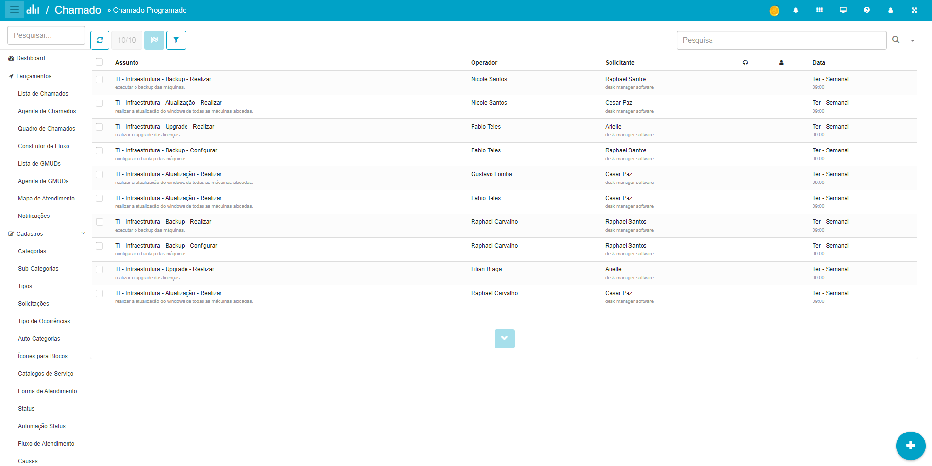 Se a sua equipe possui rotinas periódicas como uma verificação diária de backup ou uma manutenção preventiva semanal, é possível configurar um Chamado Programado.